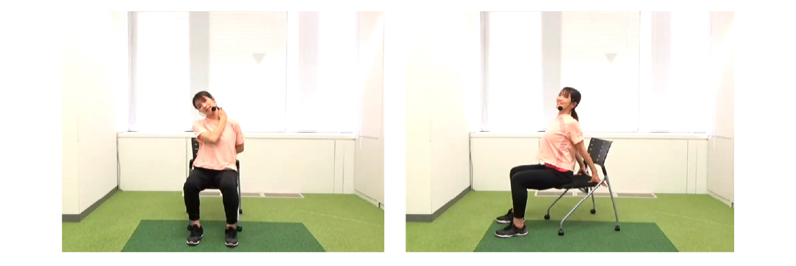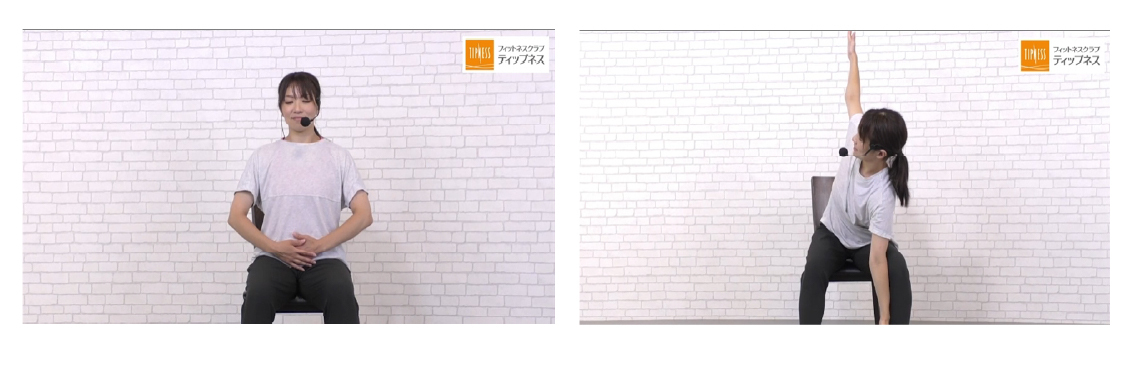 深く呼吸をしながら体をひねる動作やストレッチを行います。腹部・股関節周りの血行を促進し、腸の活性化を目指します。