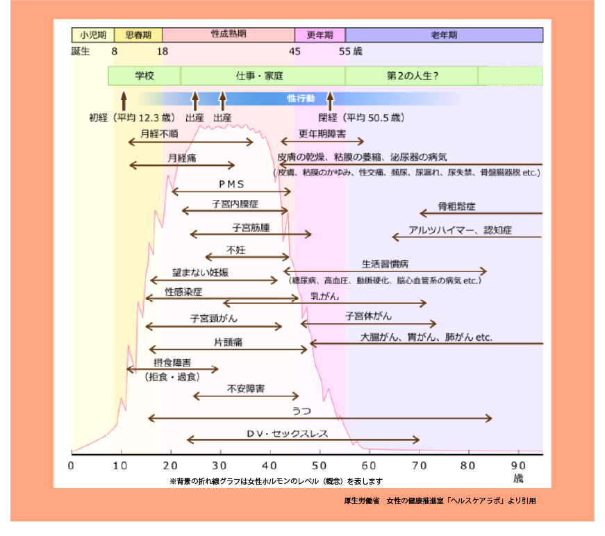 女性の健康には各年代におけるライフステージが関係しています。